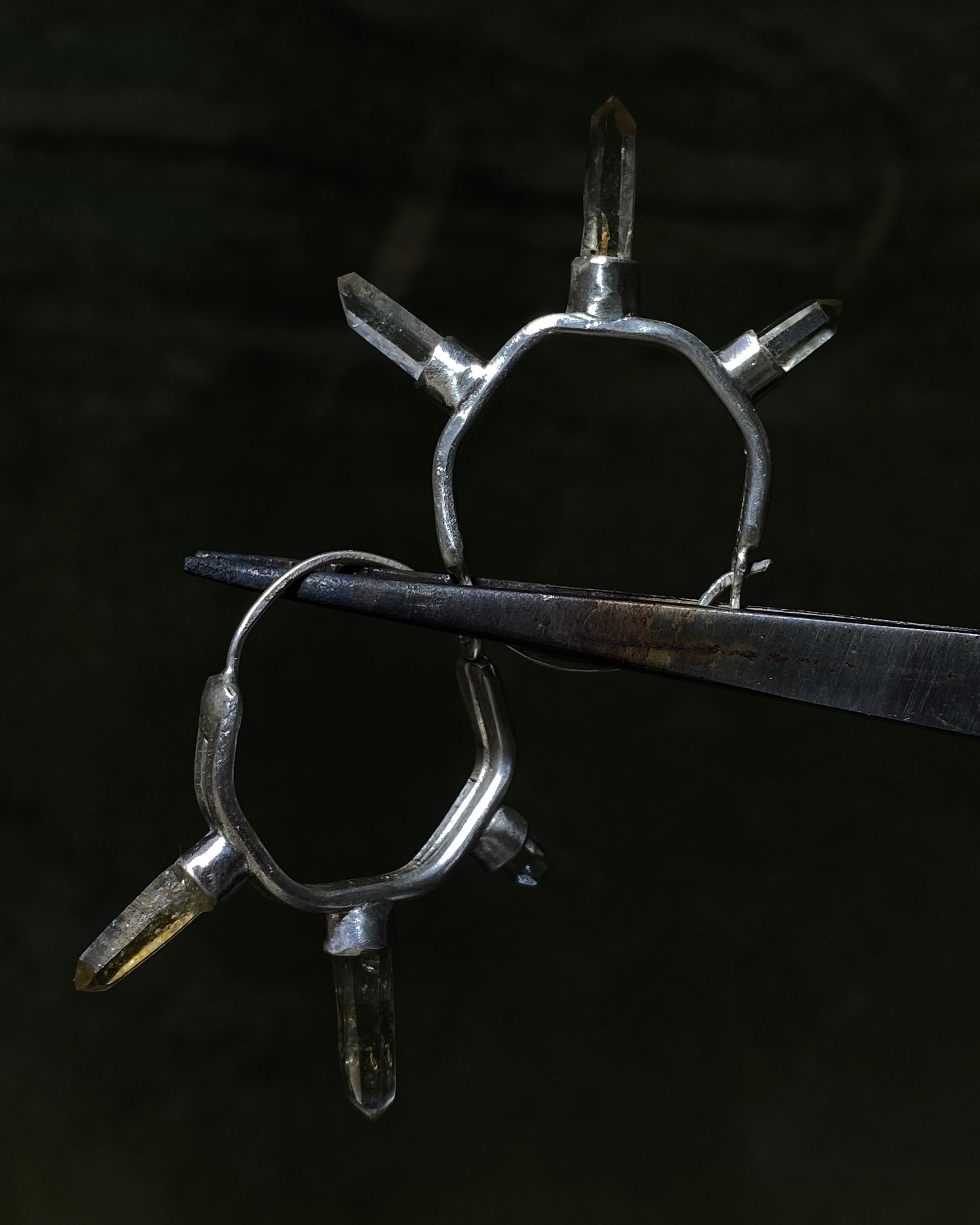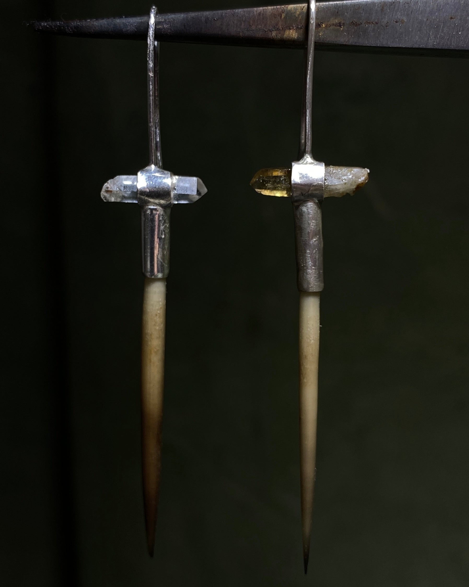 925 sterling silver earrings with ethically sourced Echidna quills, Citrine & Clear quartz crystal fossicked in northern NSW.
