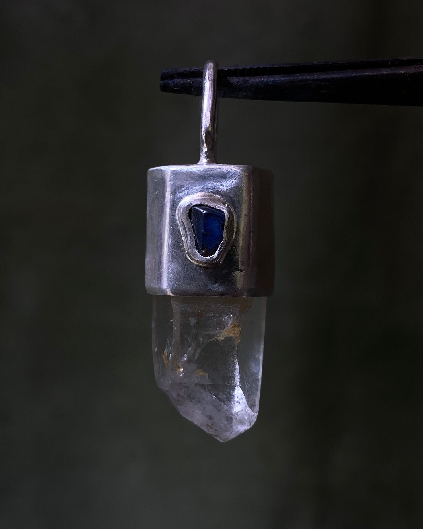925 sterling silver pendant with Clear quartz & sapphire fossicked in northern NSW.