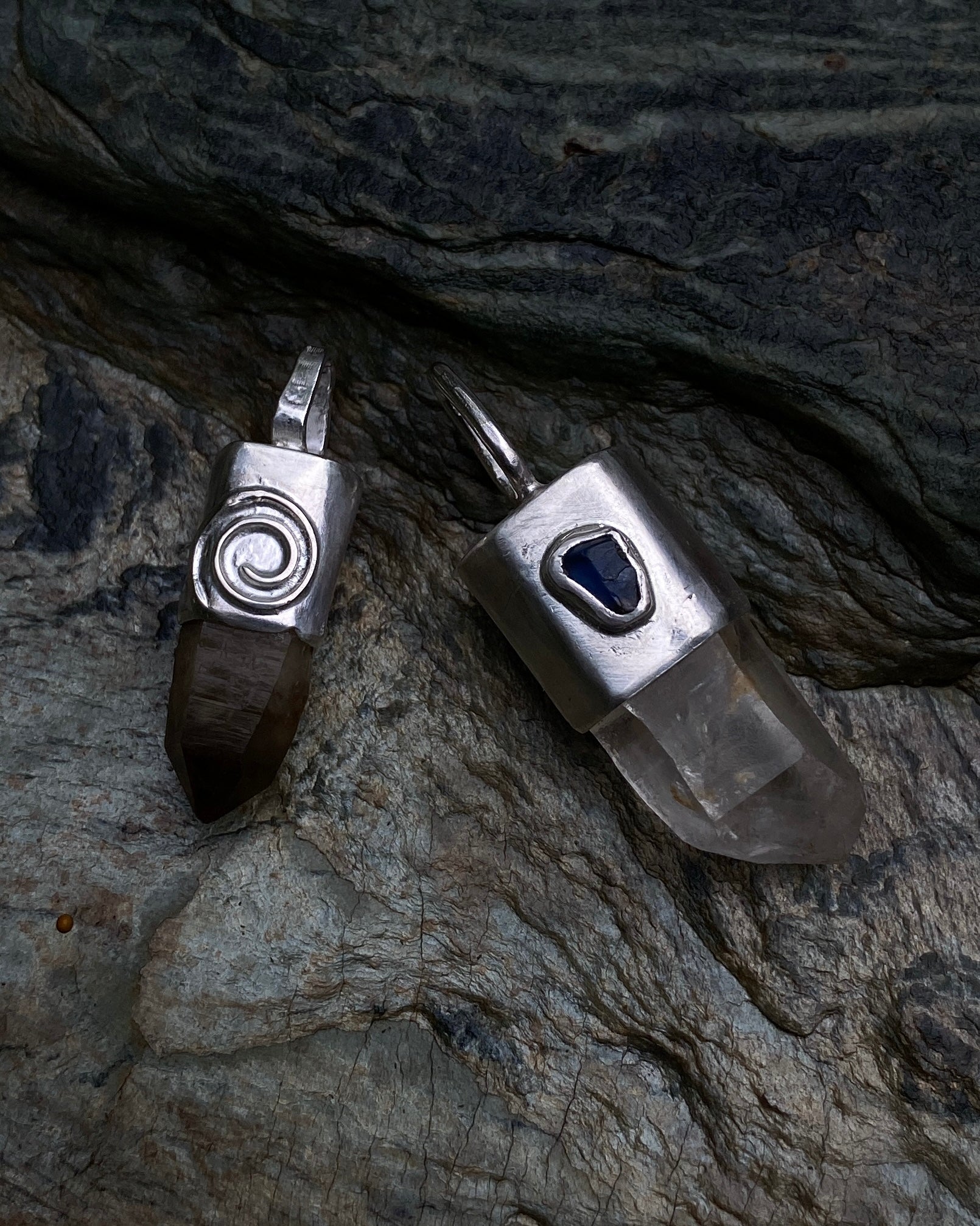 925 sterling silver pendants with Citrine, Clear quartz & sapphire fossicked in northern NSW.