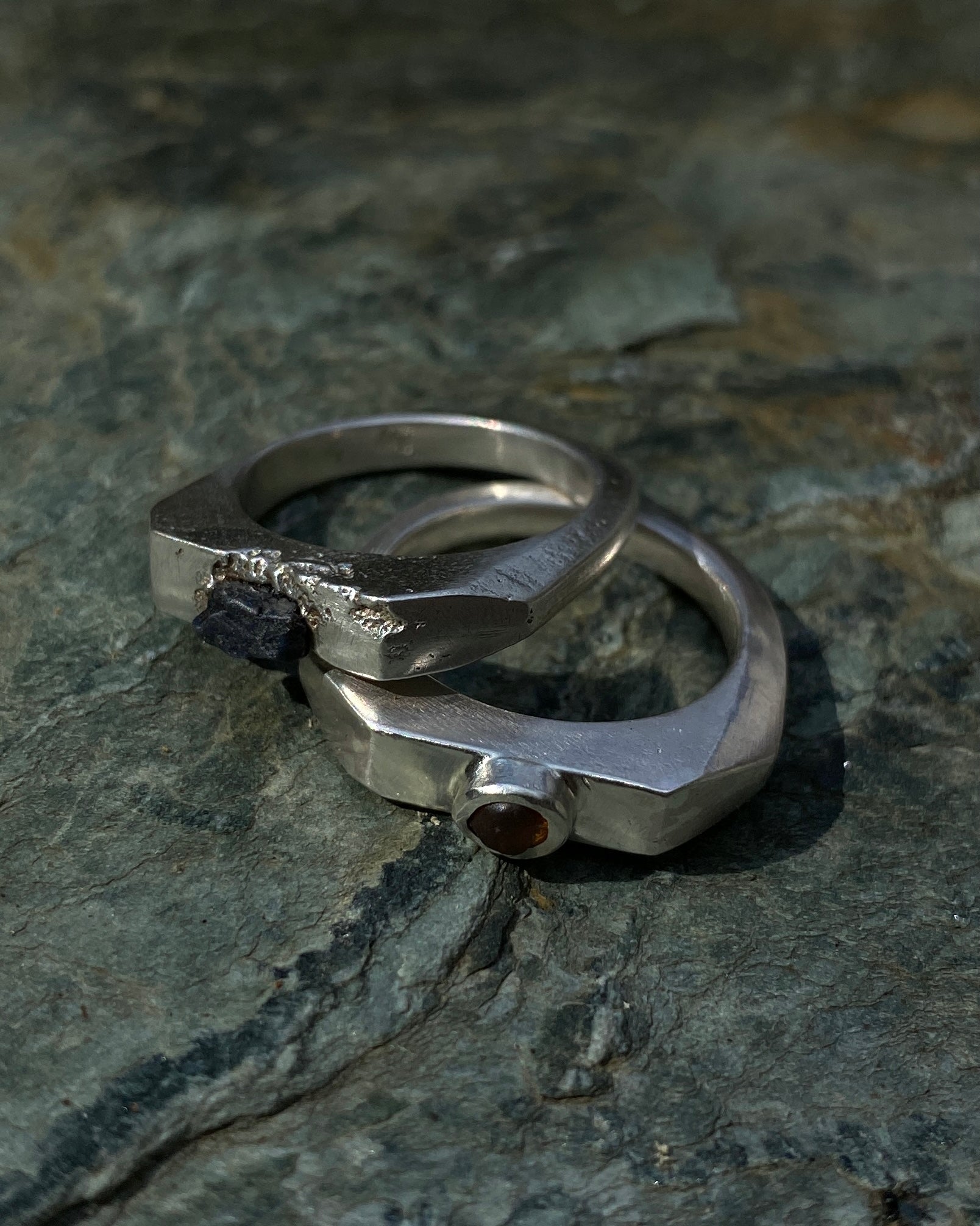 925 sterling silver signet rings with Sapphire & Zircon fossicked in northern NSW.
