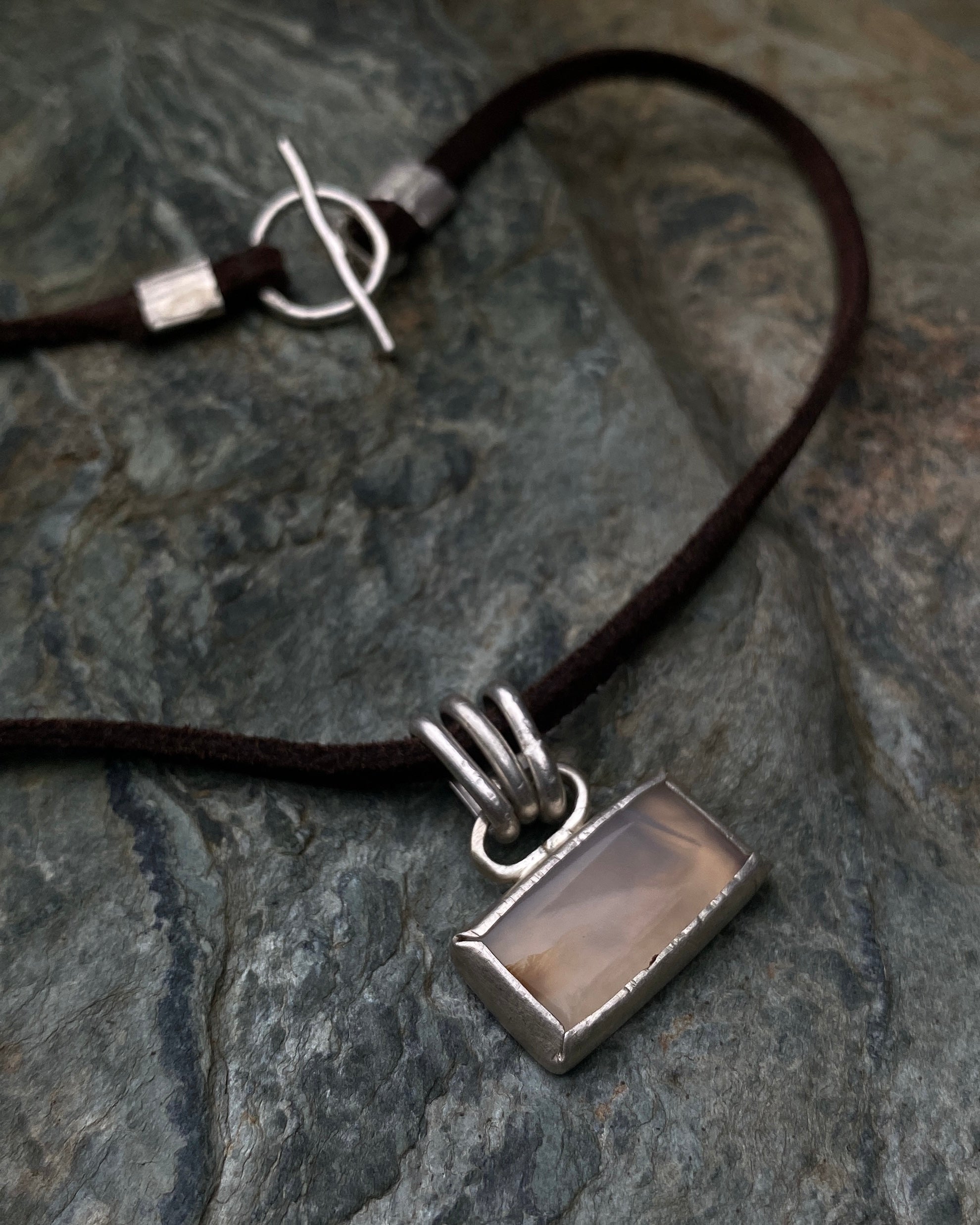 925 sterling silver pendant with clasp & genuine leather cord. Chalcedony crystal fossicked and hand cut in northern NSW.